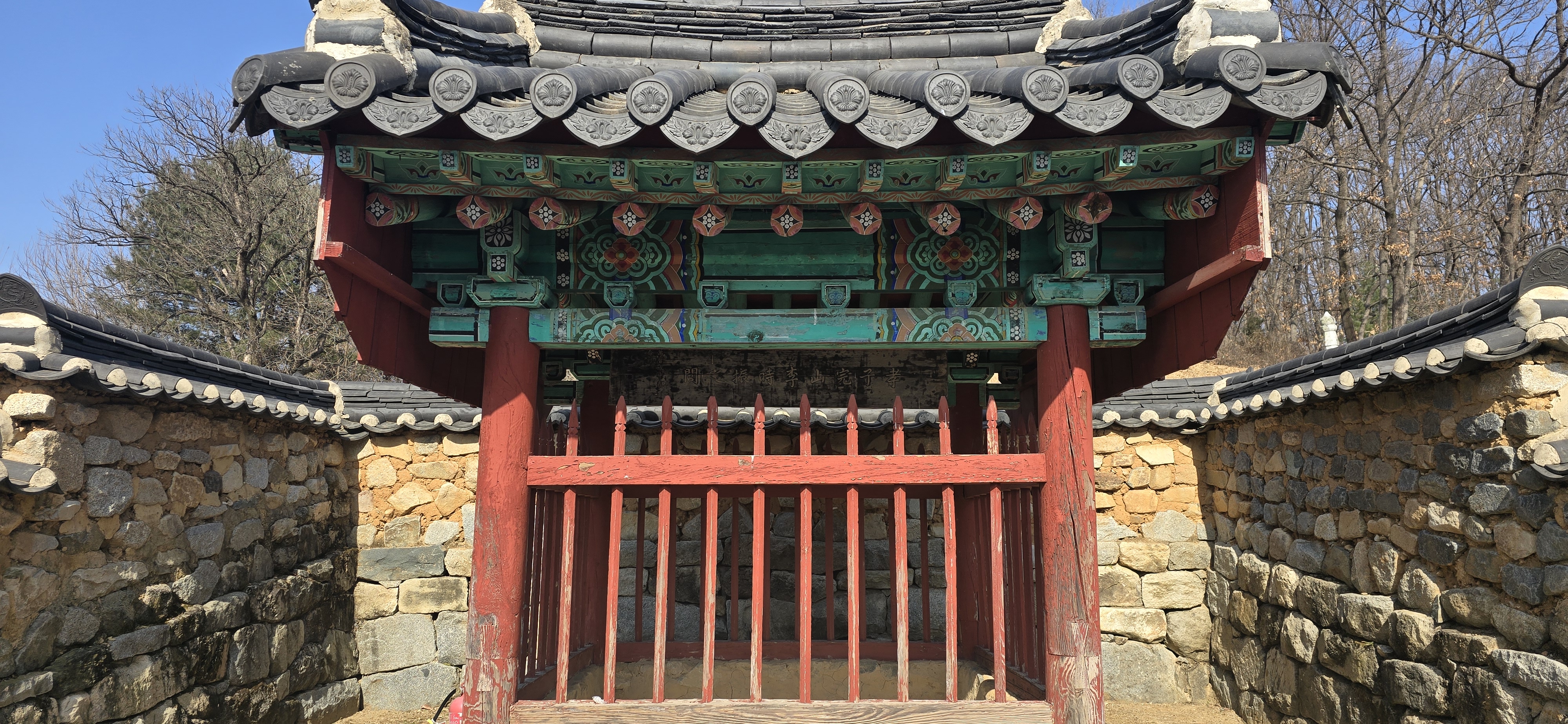 이번 방문에서 가장 인상 깊었던 점은 사진에서도 확인할 수 있듯 효자각 내부에 효자비가 보이지 않는다는 점이었습니다. 보통의 효자각은 내부에 비석을 세워 보호하는데, 이곳은 특이하게도 정면 1칸, 측면 1칸의 소박한 건물 안에 비석 대신 효행을 기리는 편액(현판)만이 걸려 있습니다.